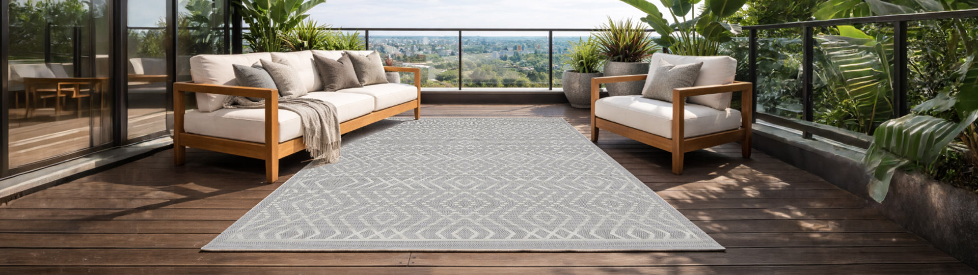 Outdoor Rugs Diamond Collection Grey Cream