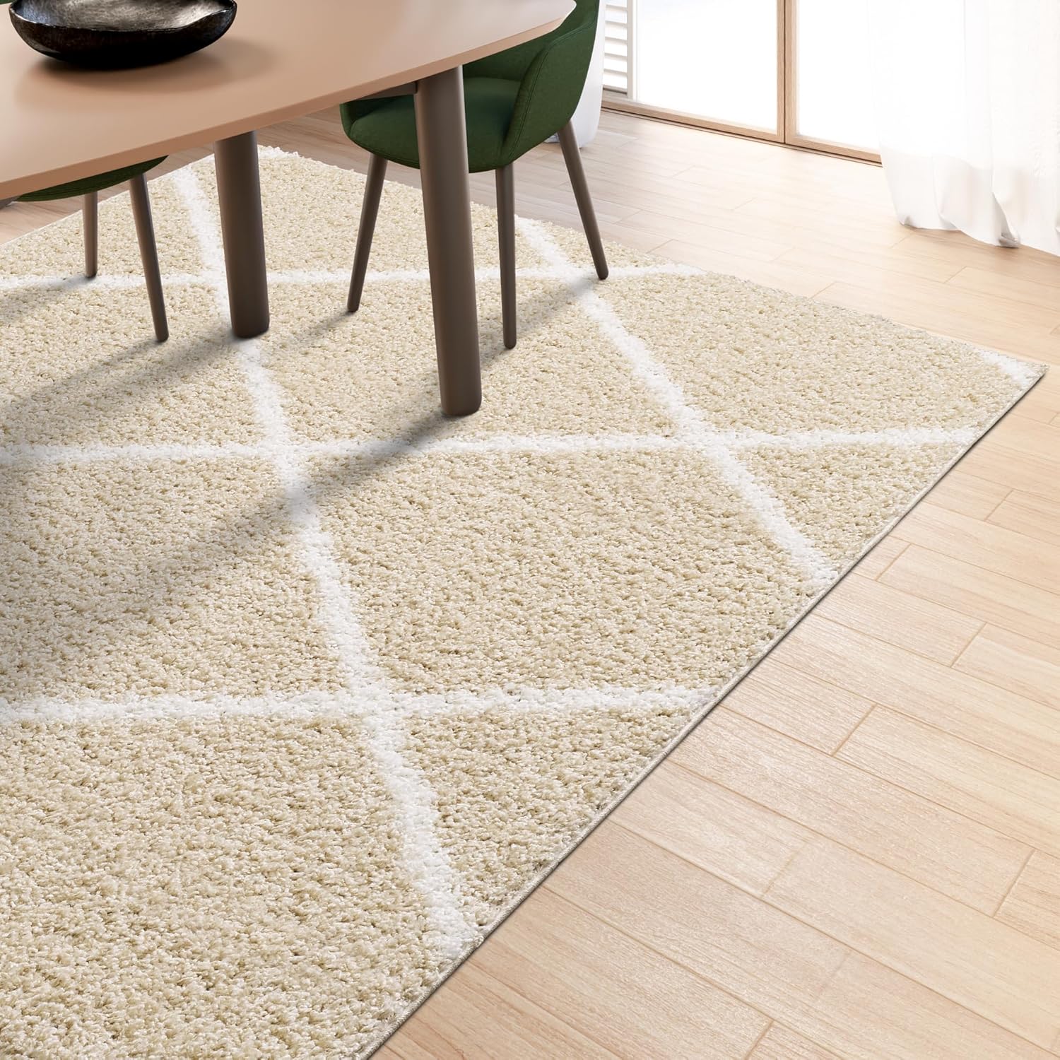 Shaggy Rug Lined Diamond Beige/Ivory