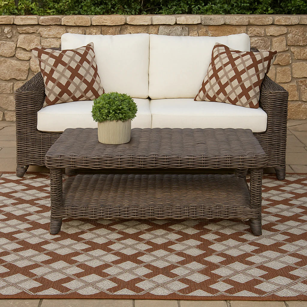 Outdoor Rugs Lined Collection Dark Blue Cream