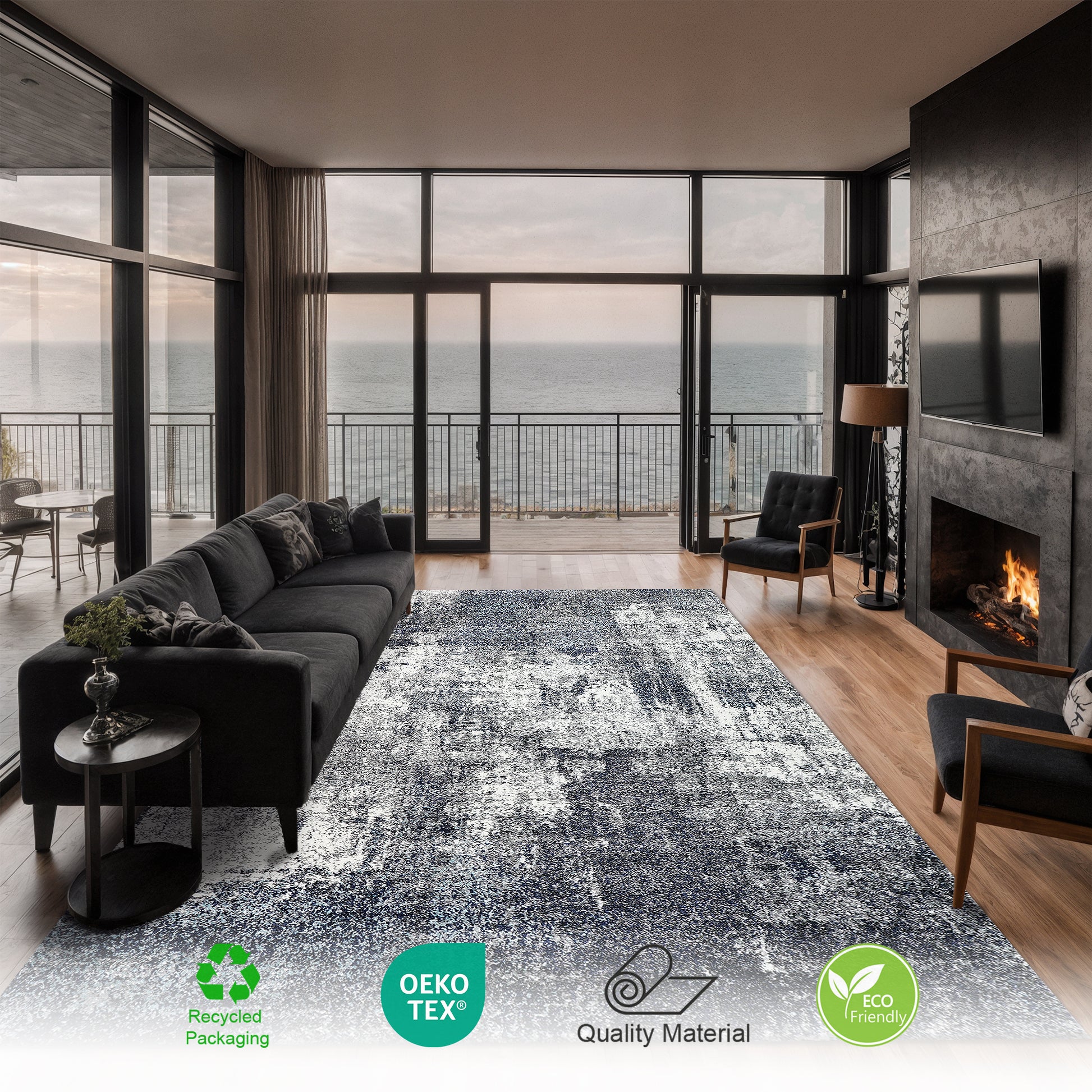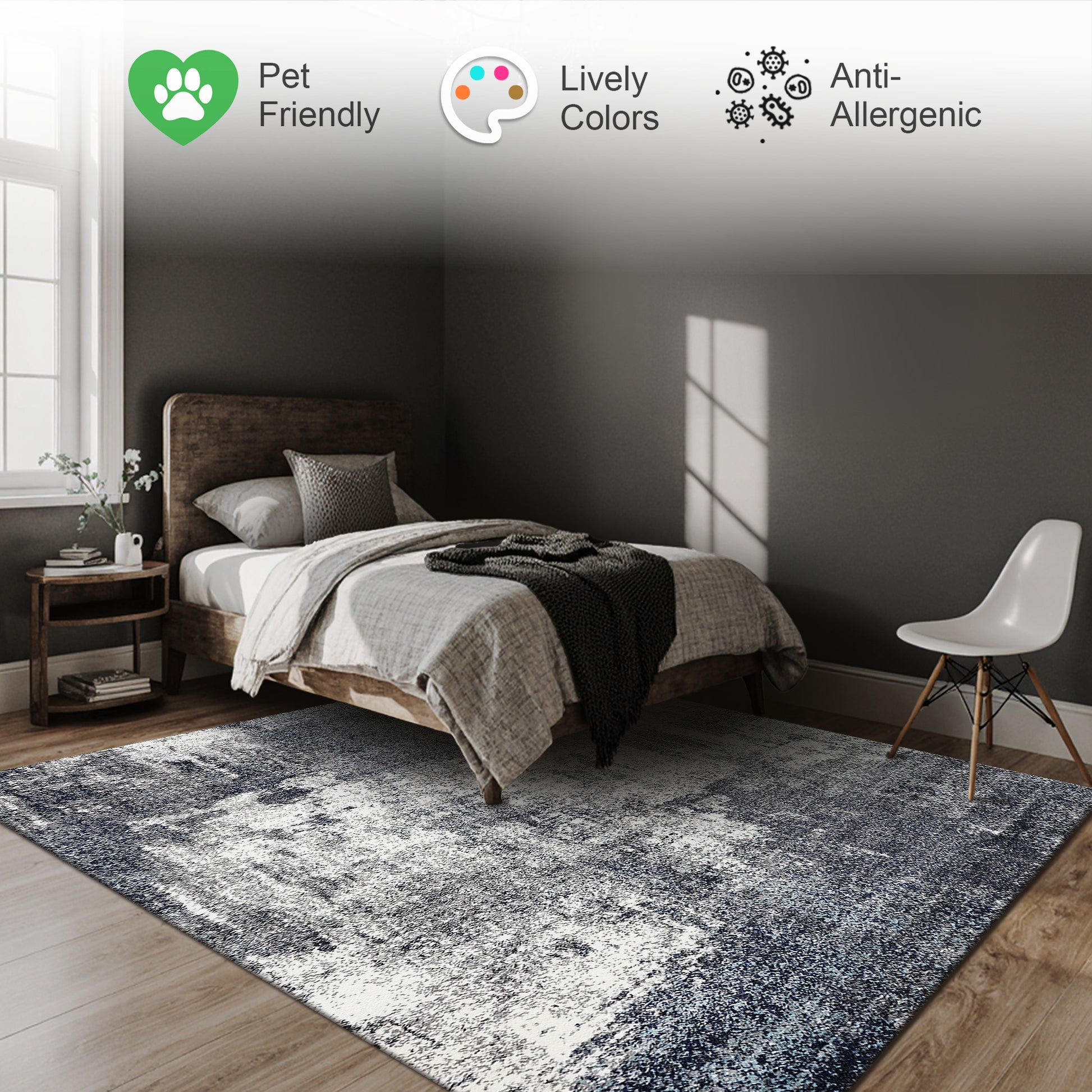 • Versatile Design for Every Space: Suits living rooms, home offices, bedrooms, and nurseries. The MARLOW rug’s balanced neutrals and bold patterning integrate across modern schemes, tying zones together for cohesive, polished environments.