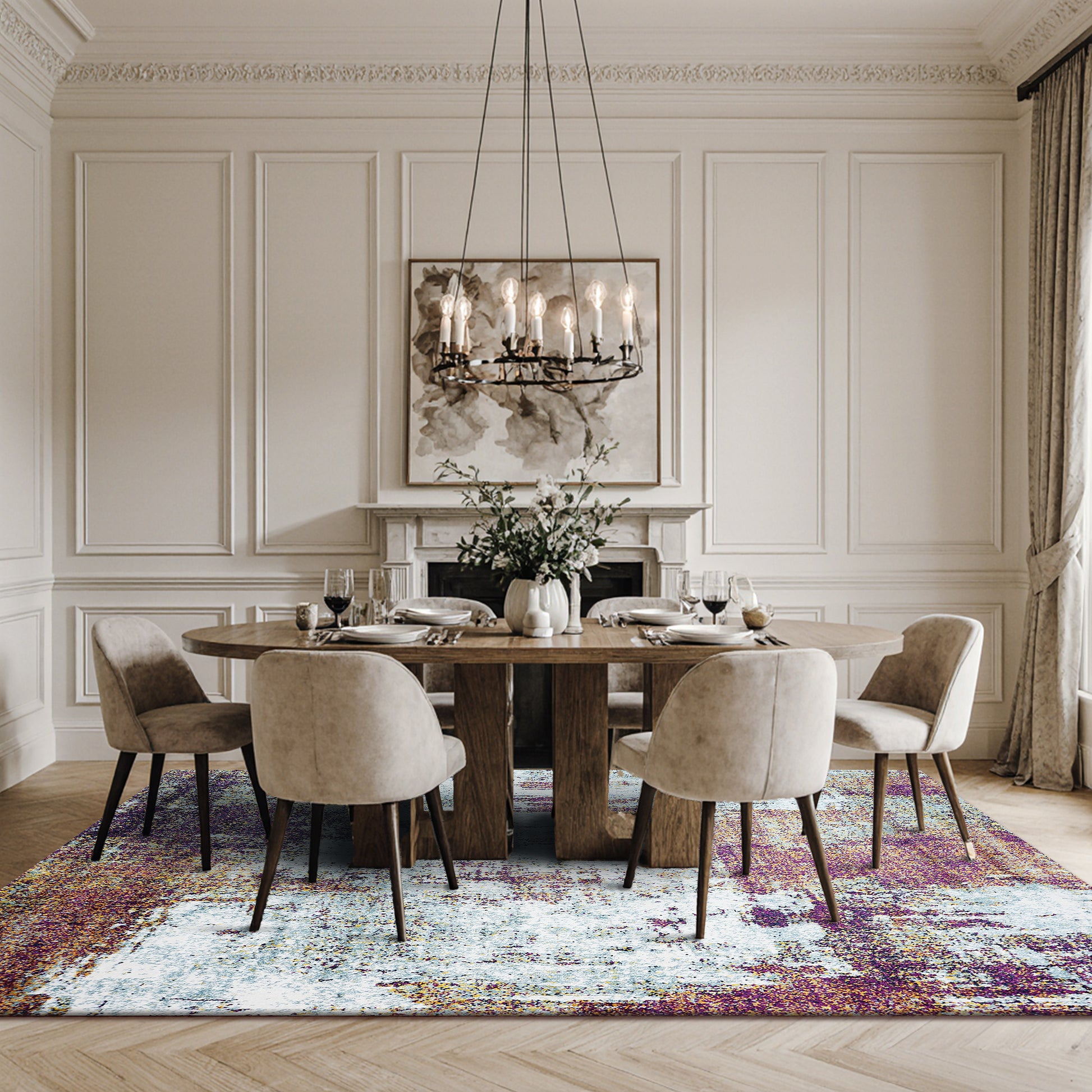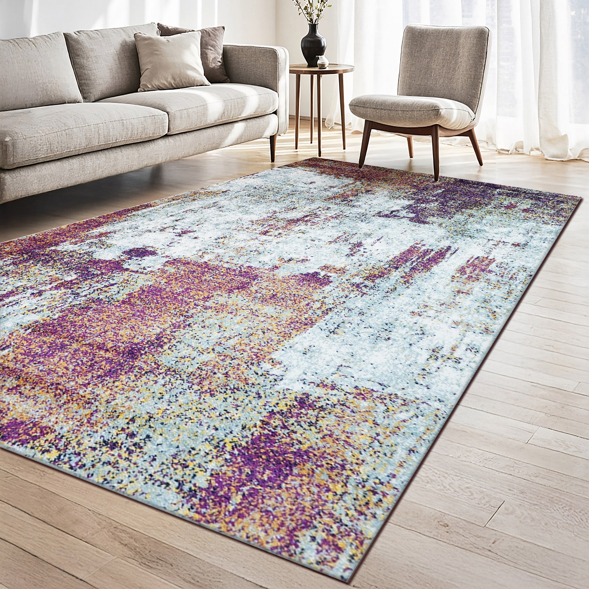Bold Modern Patterns: The MARLOW rug showcases striking abstract forms that anchor contemporary rooms. Layered colour and movement create a statement focal point, pairing visual impact with welcoming comfort for sophisticated daily living.