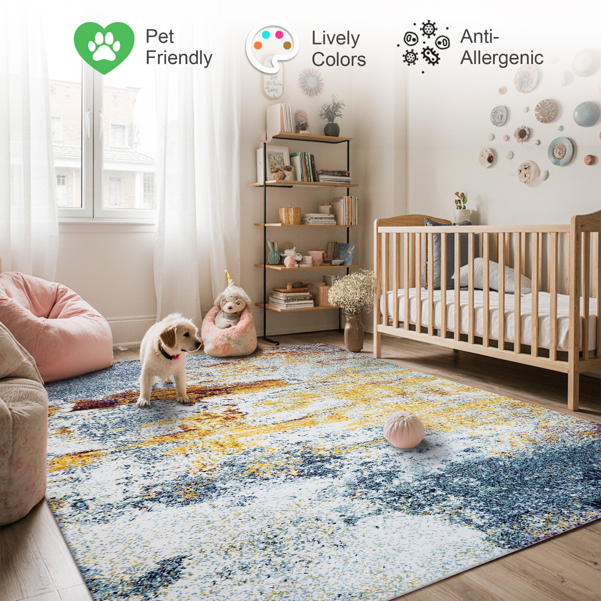 Bold Modern Patterns: The MARLOW rug showcases striking abstract forms that anchor contemporary rooms. Layered colour and movement create a statement focal point, pairing visual impact with welcoming comfort for sophisticated daily living.