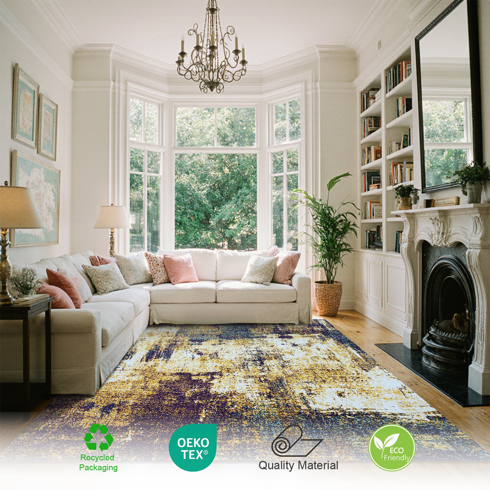 Bold Modern Patterns: The MARLOW rug showcases striking abstract forms that anchor contemporary rooms. Layered colour and movement create a statement focal point, pairing visual impact with welcoming comfort for sophisticated daily living.
