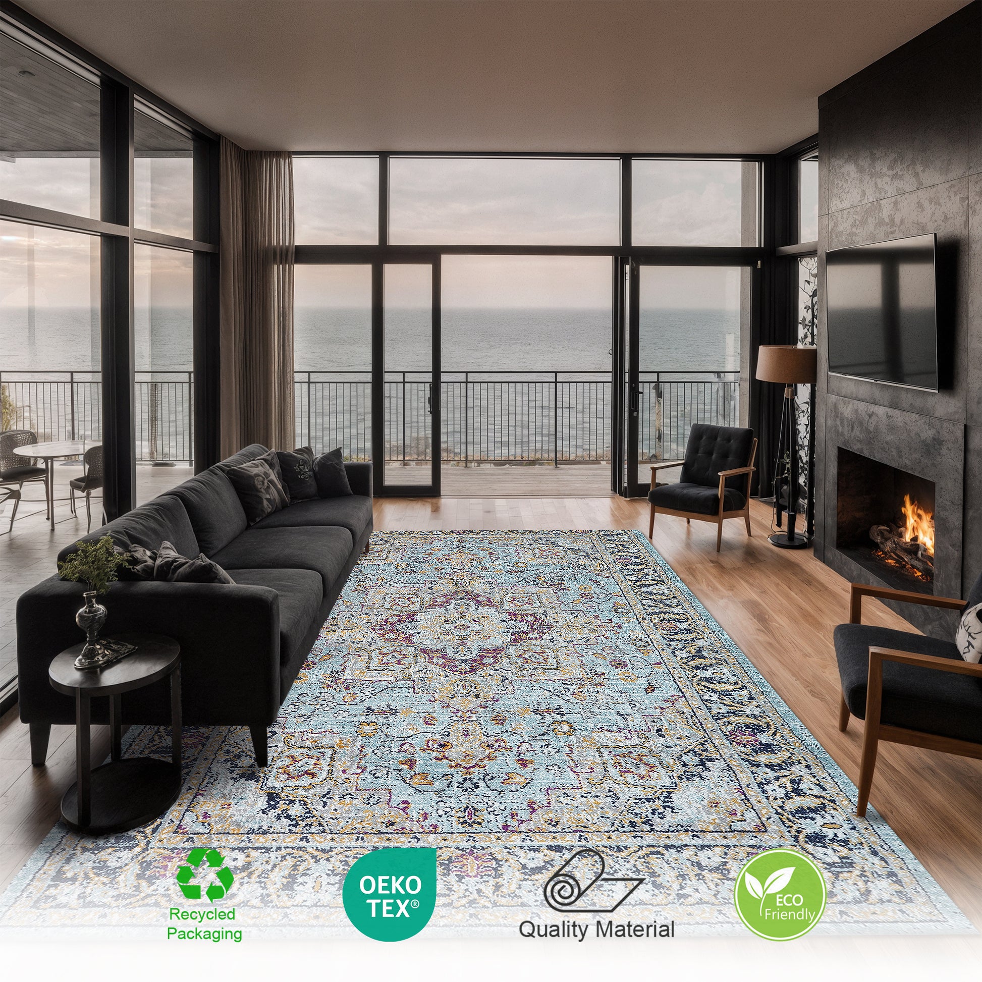 • Strong & Durable Weave: High-density woven fibres with reinforced edges maintain plushness under daily use. Eco-friendly construction and stable backing boost durability and shape retention, keeping the rug neat in lively living areas and halls.